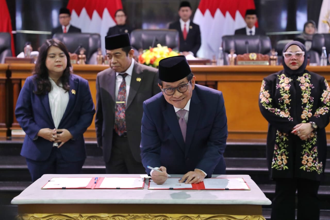 Raperda tentang Anggaran Pendapatan dan Belanja Daerah (APBD) Provinsi DKI Jakarta Tahun Anggaran 2026 telah ditandatangani oleh Gubernur DKI Jakarta, Pramono Anung. Penandatanganan dilakukan dalam rapat paripurna bersama DPRD DKI Jakarta, pada Rabu, 12 November 2025. (Sumber Foto : Tim. Dok. Prov DKI Jakarta